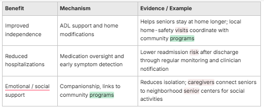 A concise view of how in-home services map to benefits and local examples.