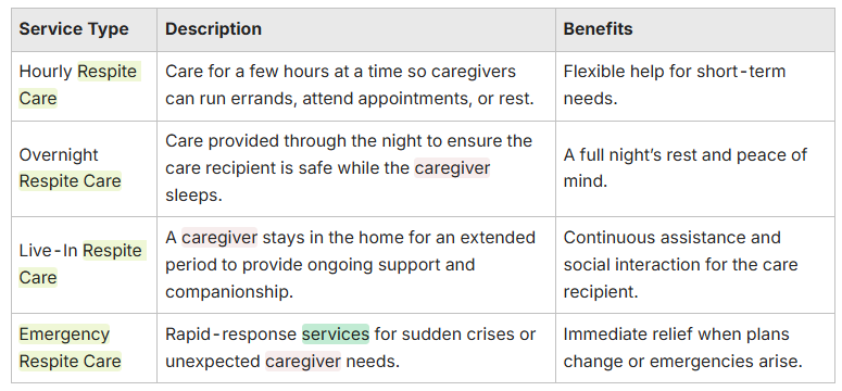 How Hourly, Overnight, Live-In, and Emergency Respite Differ